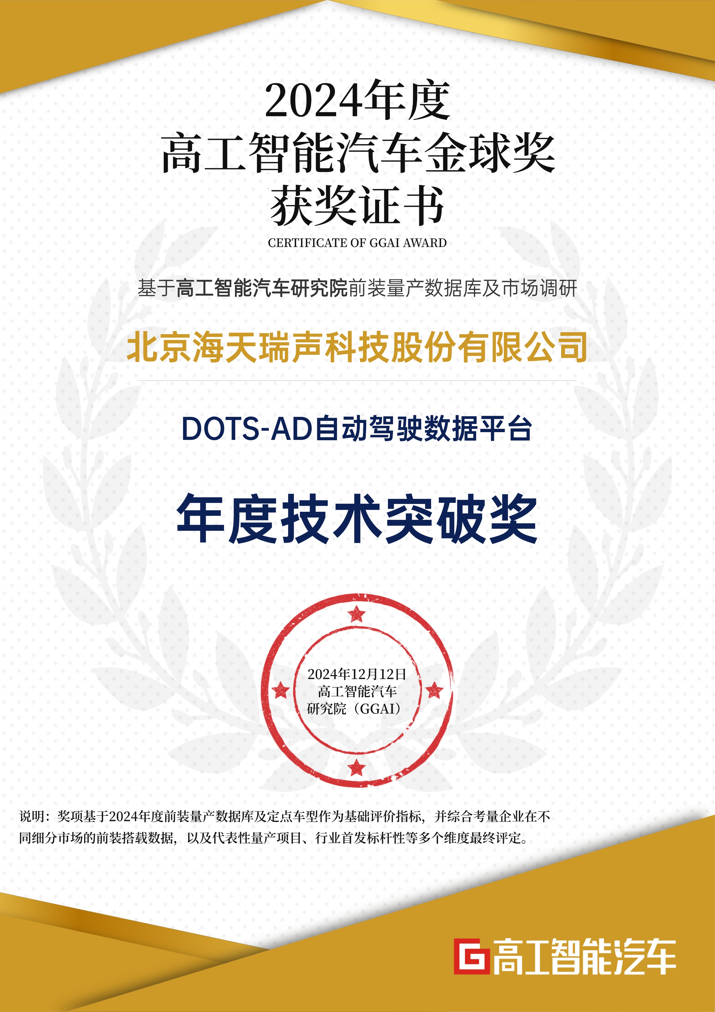 12月10日-12日,2024年(第八届)高工智能汽车年会暨年度金球奖评选颁奖典礼在上海举办。开云体育凭借「DOTS-AD自动驾驶数据平台」荣获高工智能汽车研究院颁发的“2024年度智能汽车金球奖·技术突破奖”。